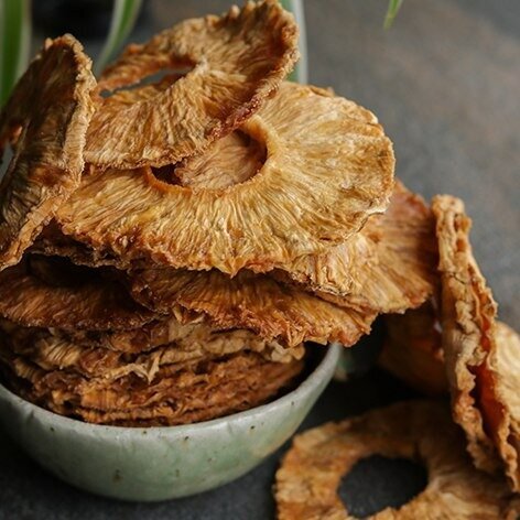Краткое описание: сладкие с кислинкой слайсы ароматного ананаса. Свежие, натуральные и в меру подсушенные. Без добавления сахара. 850₴