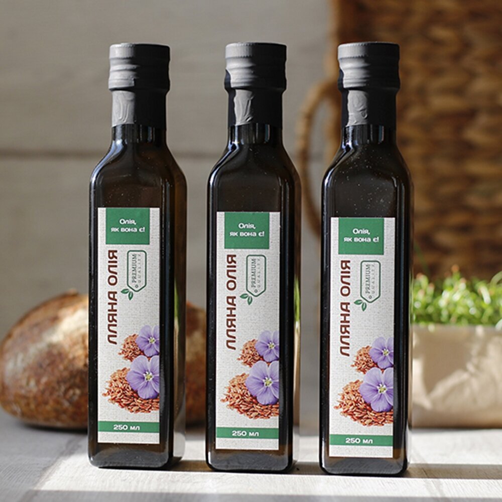Короткий опис: свіжа якісна олія з насіння льону. Має м'який смак та золотисто-жовтий колір. 2.74$ 2.39$